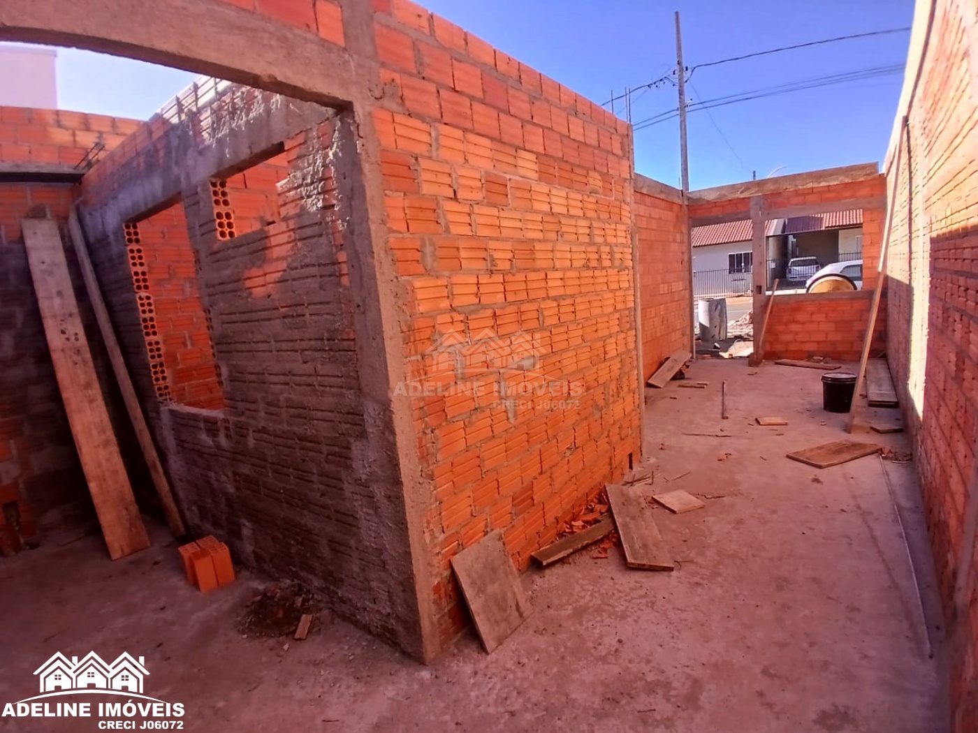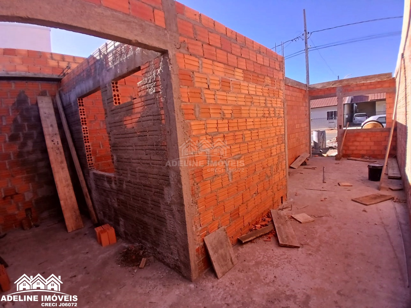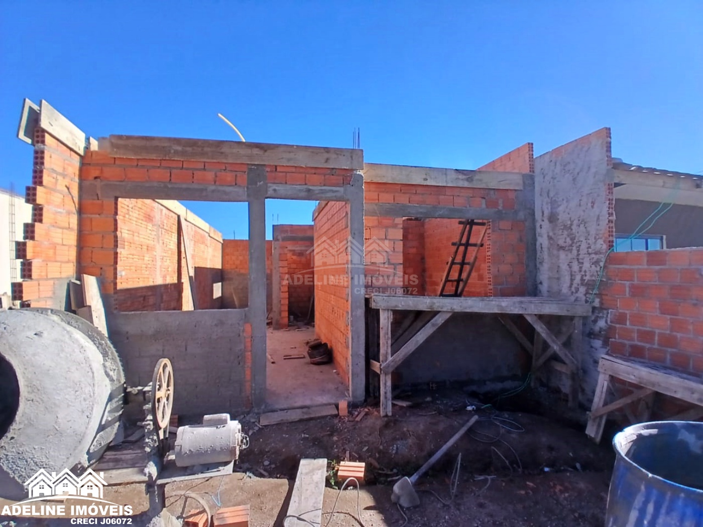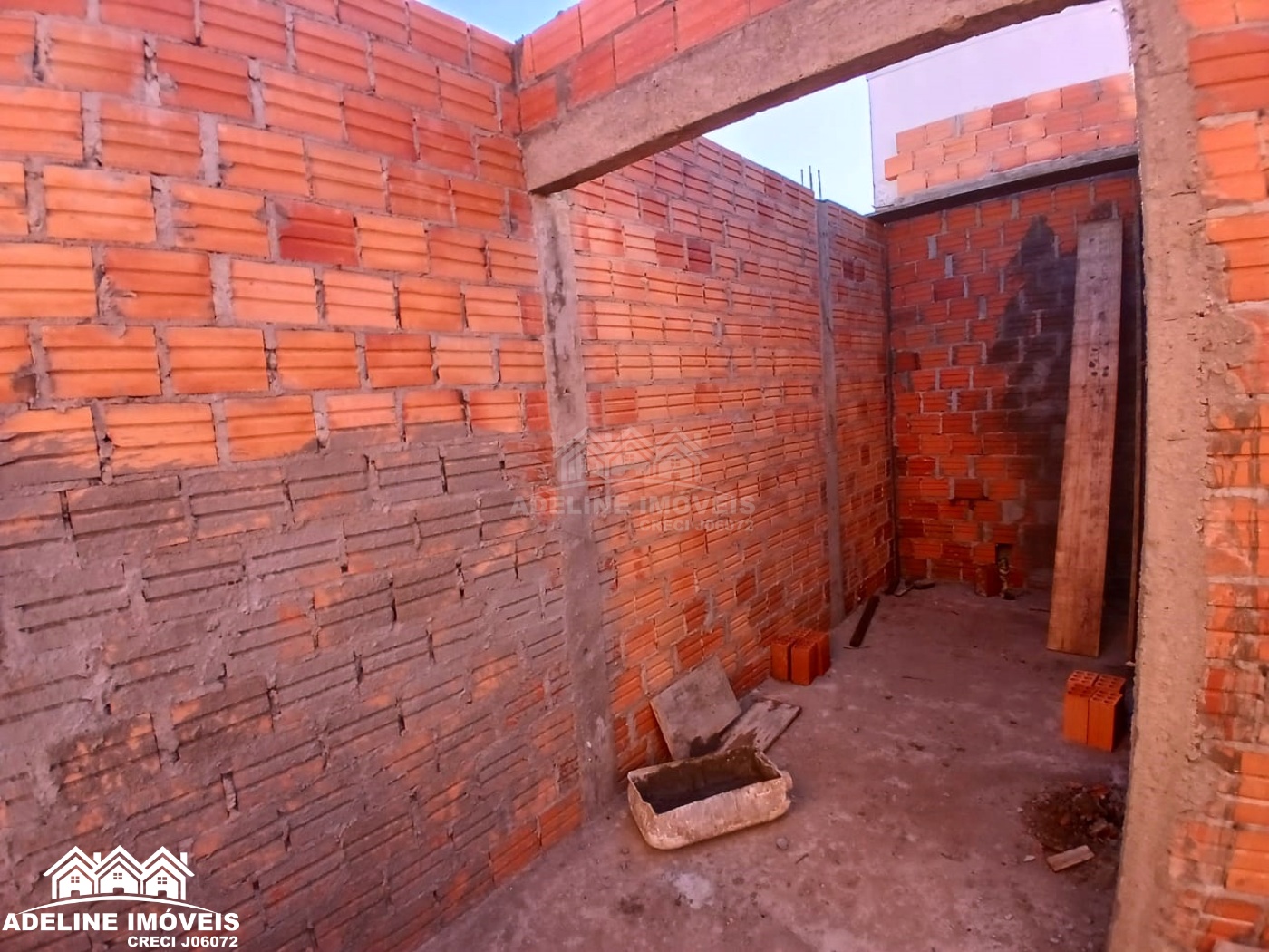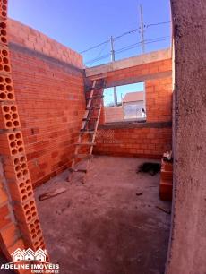 Casa em construção, contendo dois quartos, sala, cozinha, banheiro e lavanderia.