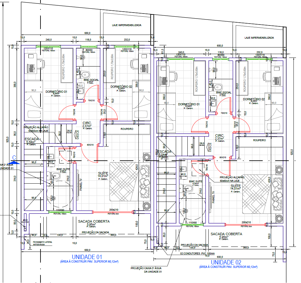 -3 Quartos amplos, sendo 1 Suíte privativa para o seu máximo conforto.
